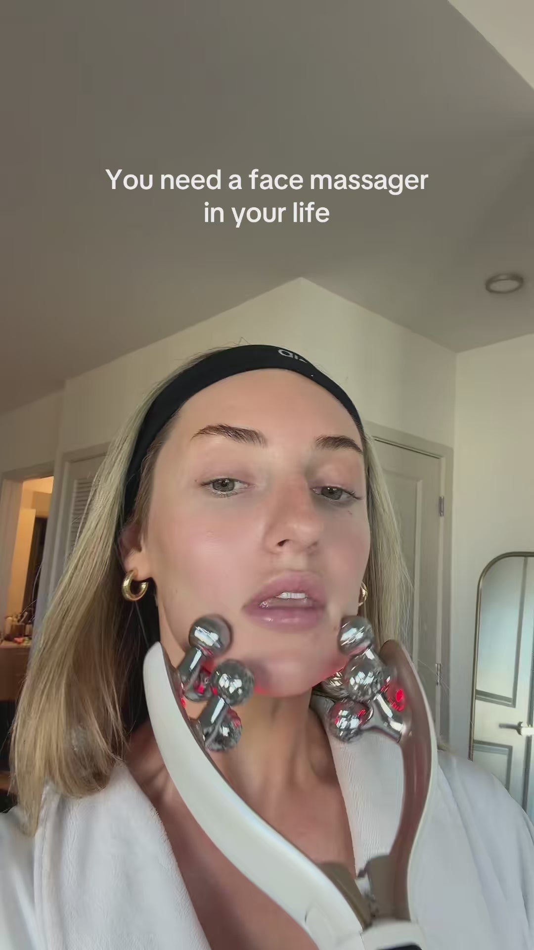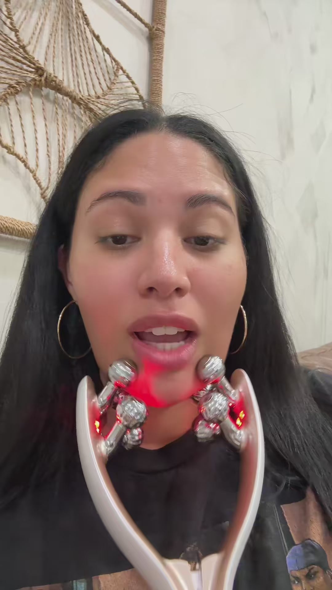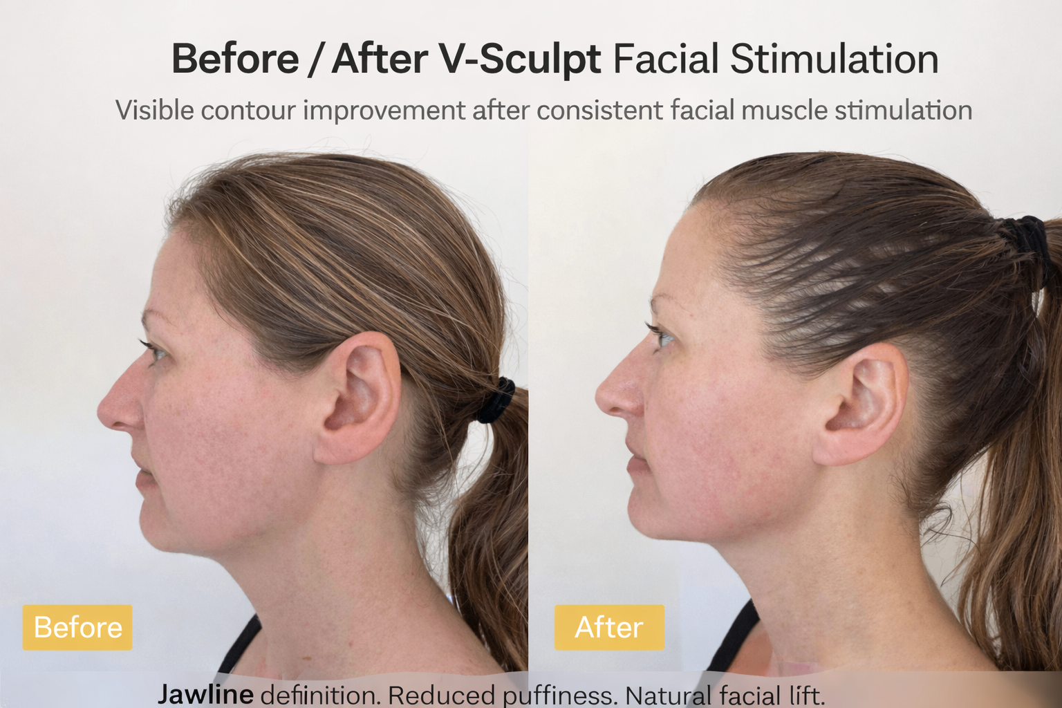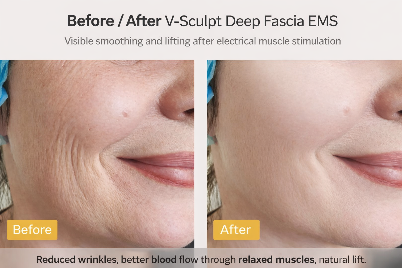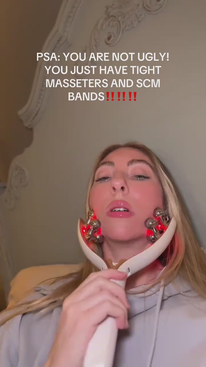 By stimulating deep-layer circulation and releasing tight muscle bands, the device physically narrows the jawline for a refined, V-shaped silhouette.
